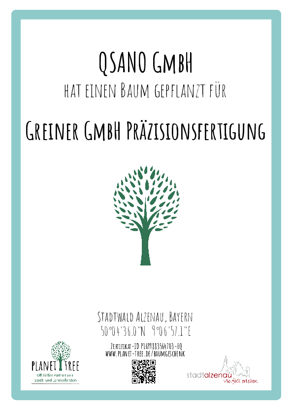 Mit der Baumpatenschaft wird ein Beitrag zum Schutz unserer Umwelt geleistet und gleichzeitig ein Zeichen für eine nachhaltige Zukunft gesetzt. Für uns ist das nicht nur ein schönes Geschenk, sondern auch eine Erinnerung daran, dass wirtschaftlicher Erfolg und verantwortungsvolles Handeln zusammengehören.